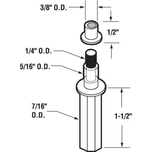 - Bifold door top pivot 7/16″ outside diameter housing assembly with 3/8″ outside diameter guide caps – fits Acme, Cox, Johnson, and others