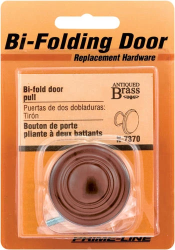 Prime-Line® Products has been supplying repair and replacement parts for windows and doors since 1978. This bifold door knob is constructed from durable die-cast metal and comes plated in an antique brass finish. It offers easy access and impressive style to your closet and can be used on solid wood or hollow core doors. The wide base of this model helps prevent door crushing, and its 1-11/16-inch diameter head provides a comfortable hold. One fastening screw is included with this package to provide quick and convenient installation.