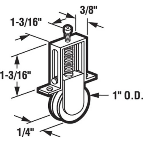 Prime-Line® has been supplying repair and replacement parts for windows and doors since 1978. These roller assemblies from Prime-Line® feature 1-inch diameter wheels with a center-grooved design and steel ball bearing construction for smooth and quiet operation. They include a spring-loaded, aluminum housing with an inner plastic yoke mechanism that self-adjusts and can be used as top or bottom mount rollers. This particular type of roller fits on Columbia brand sliding screen doors and comes with all necessary fasteners for quick and easy installation.