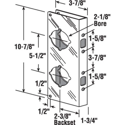 - For 2-3/8″ backset and 1-3/4″ door thickness
