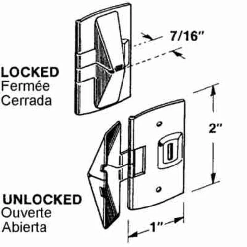 - Wood Window Flip Lock Dimensions: 1″ W x 2″ H x 7/16″ projection