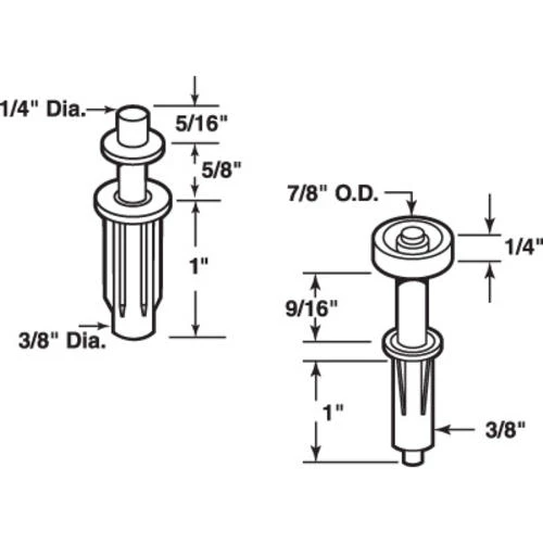 Prime-Line® Products has been supplying repair and replacement parts for windows and doors since 1978. This bifold pivot and guide set from Prime-Line® includes one pivot and one roller guide. Each piece features a durable steel shaft with plastic housing and a spring-loaded, self-adjusting design for smooth and quiet operation of your bifold door. The guide roller has a 7/8-inch diameter plastic wheel, and both parts install easily by simply tapping into place with a hammer. This particular model is used by several wardrobe door manufacturers.