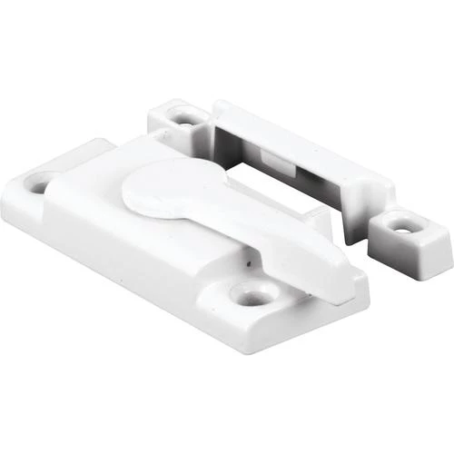 This sash lock from Prime-Line® is constructed from die cast and comes finished in white for a clean, bright look. It features a cam-action hook which draws the keeper in firmly when locked, creating a tight seal on your window and an added measure of security for your home. The latch body is fitted with anti-jimmy studs which engage the keeper and further protect your home from break-ins. This particular latch is very popular for single- and double-hung vinyl windows and comes complete with fasteners.