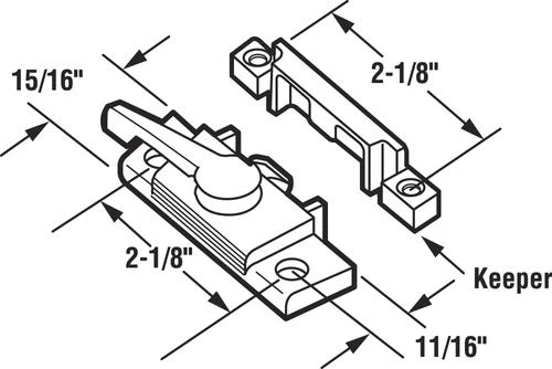 - Vertical hung window latch with keeper – popular latch used on vinyl windows