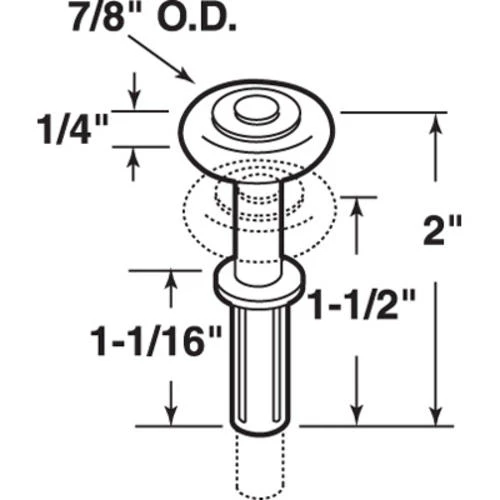 - Bifold door 3/8″ outside diameter, plastic top pivot with round, plastic guide wheel