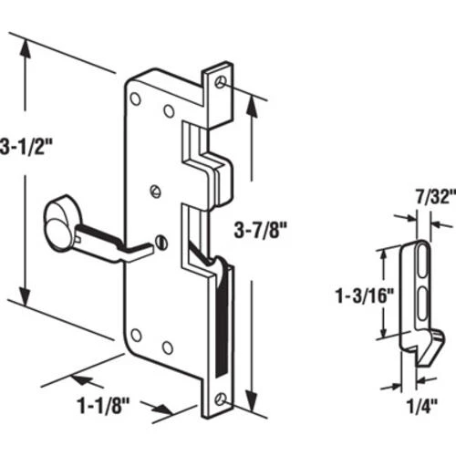 - Keeper dimensions: 7/32″ W x 1-3/16″ H x 1/4″ D
