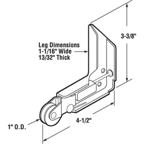 - Roller assembly dimensions: 4-1/2″ L x 3-7/16″ H x 13/32″ T