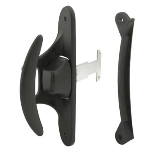 Prime-Line® has been supplying repair and replacement parts for windows and doors since 1978. This sliding screen door handle from Prime-Line® is constructed from durable black plastic and features a solid steel hook, providing an excellent hold for your patio door. This latch and pull set boasts a non-handed, side-mount design for versatile mounting options and is built specifically to fit on hat-section doors. All necessary fasteners are included for quick and convenient installation.