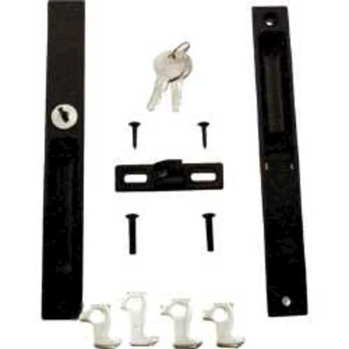 - Includes inside latch, 4 hooks, keeper, outside pull, and 2 keys