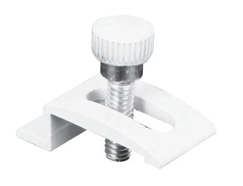 Prime-Line Products has been supplying repair and replacement parts for windows and doors since 1978. These panel clips from Prime-Line are constructed from solid aluminum and come painted in a white finish. They feature a 1/4″ drop and are ideally used to secure storm window panels to storm doors. These clips come complete with aluminum, knurl-headed thumbscrews for quick and easy attachment.