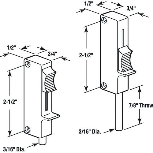 - Narrow body plastic housing with steel bolt has a 7/8″ throw